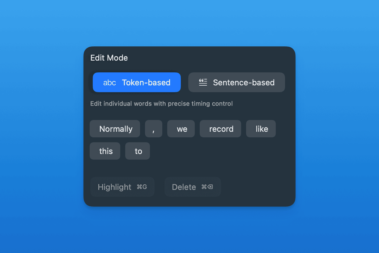 Clickabc Token-basedto enter precision mode. This allows you to precisely adjust the timing and content of every individual word, achieving pixel-perfect synchronization. Select text and clickHighlightto emphasize it. -